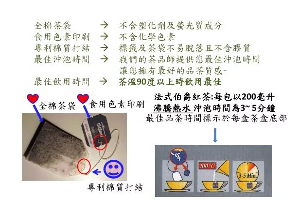 建議熱茶:以250毫升的沸騰熱水沖泡3~5分鐘