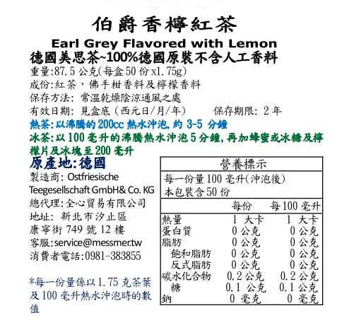 商品推薦:德國美思茶 伯爵香檸茶(50包x1.75g)